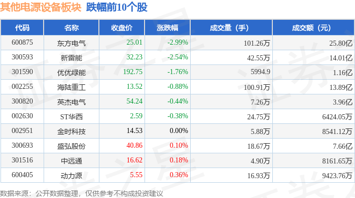 从资金流向上来看,当日其他电源设备板块主力资金净流出5.84亿元,游资资金净流出1.14亿元,散户资金净流入6.98亿元。其他电源设备板块个股资金流向见下表: