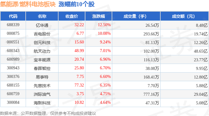 从资金流向上来看,当日氢能源/燃料电池板块主力资金净流出58.51亿元,游资资金净流出5171.78万元,散户资金净流入59.03亿元。氢能源/燃料电池板块个股资金流向见下表: