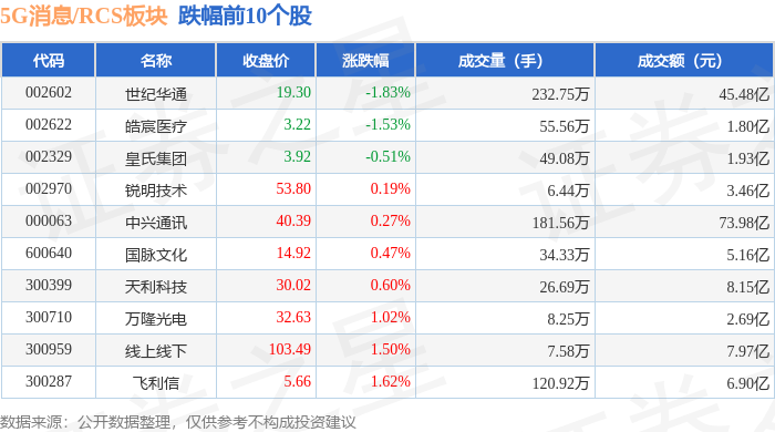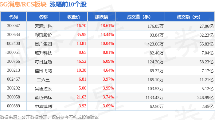 从资金流向上来看,当日5G消息/RCS板块主力资金净流出4.75亿元,游资资金净流出4.02亿元,散户资金净流入8.76亿元。5G消息/RCS板块个股资金流向见下表:
