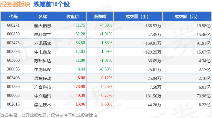 从资金流向上来看,当日服务器板块主力资金净流出1.32亿元,游资资金净流出12.56亿元,散户资金净流入13.88亿元。服务器板块个股资金流向见下表: