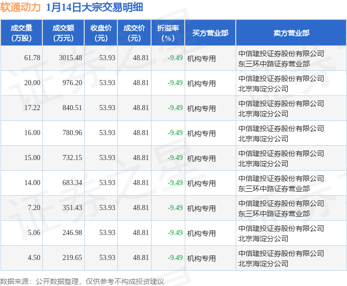证券之星消息,1月14日软通动力发生大宗交易,交易数据如下: