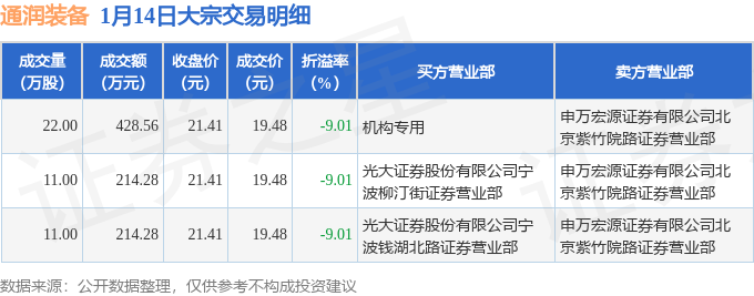 证券之星消息,1月14日通润装备发生大宗交易,交易数据如下: