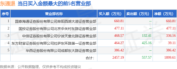 证券小知识:龙虎榜是交易所披露的竞价交易公开信息,现身龙虎榜的个股都是当日最为活跃的个股,是投资者日常重点关注的数据。交易所公布当日买入金额和卖出金额前五名的席位,其中一些席位代表特殊意义,如机构专用席位是指基金专用席位、券商自营专用席位、社保专用席位、券商理财专用席位、保险机构专用席位、保险机构租用席位、QFII专用席位等机构投资者买卖证券的专用通道和席位。深股通专用、沪股通专用为北向资金的交易席位。从龙虎榜数据可以发现和研究机构、游资和散户的资金动向。一些营业部席位经常上榜,市场知名度较高,投资者整理代表散户、游资、量化等不同资金的营业部席位。