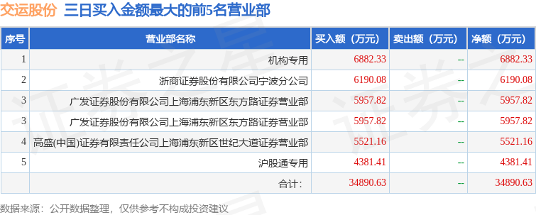 从龙虎榜公布的三日买卖数据来看,机构合计净买入6882.33万元,北向资金合计净买入1715.01万元。上海东方路、毛老板、炒股养家等知名游资榜上有名。(知名游资上海东方路一般指广发证券股份有限公司上海浦东新区东方路证券营业部席位、知名游资毛老板一般指广发证券股份有限公司上海浦东新区东方路证券营业部席位、知名游资炒股养家一般指华鑫证券有限责任公司上海茅台路证券营业部席位,根据市场资料整理,仅供参考)