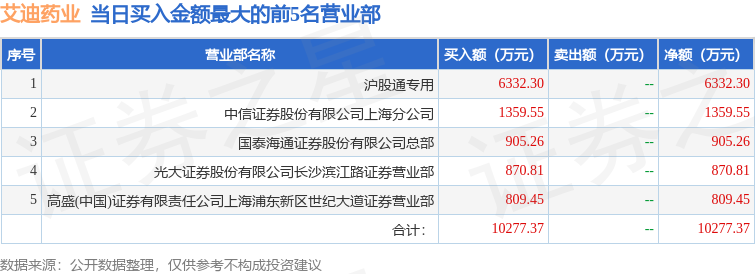 证券之星消息,沪深交易所2026年1月14日公布的交易公开信息显示,艾迪药业(688488)因有价格涨跌幅限制的日收盘价格涨幅达到15%的前五只证券登上龙虎榜。此次是近5个交易日内第1次上榜。