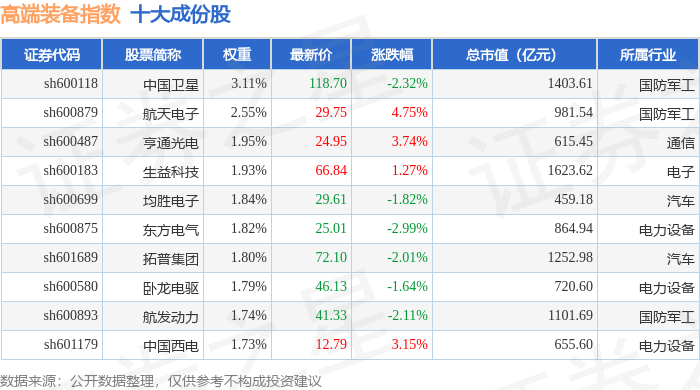 证券之星消息,1月14日,高端装备(000097)指数报收于12407.13点,涨0.97%,成交2660.81亿元,换手率3.19%。当日该指数成份股中,上涨的有32家,龙芯中科以10.49%的涨幅领涨,下跌的有28家,恒立液压以5.06%的跌幅领跌。