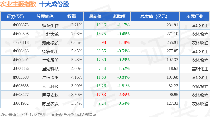 农业主题(000122)指数十大成份股详情如下:
