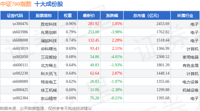 近10日内中证700(000907)指数成份股做了调整,新纳入了1只股票,剔除了1只股票。