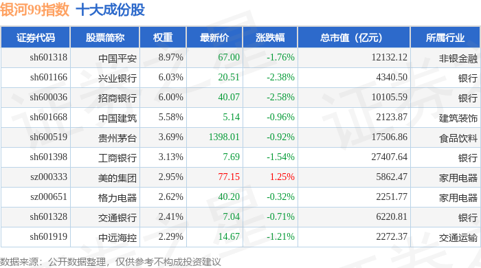 银河99(000959)指数十大成份股详情如下:
