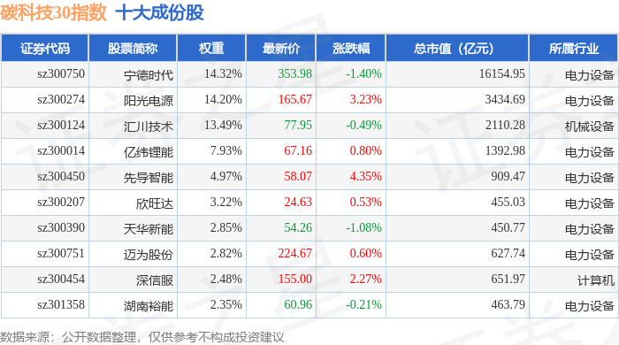 碳科技30(399030)指数十大成份股详情如下: