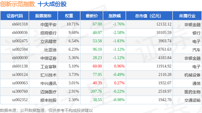 创新示范(399351)指数十大成份股详情如下: