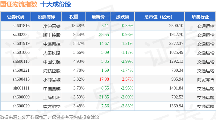 证券之星消息,1月14日,国证物流(399353)指数报收于2160.41点,跌0.88%,成交313.83亿元,换手率1.22%。当日该指数成份股中,上涨的有9家,恒逸石化以5.63%的涨幅领涨,下跌的有31家,永辉超市以4.73%的跌幅领跌。