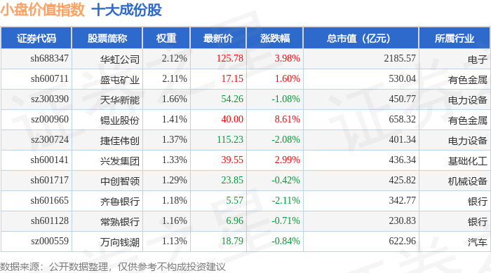 小盘价值(399377)指数十大成份股详情如下:
