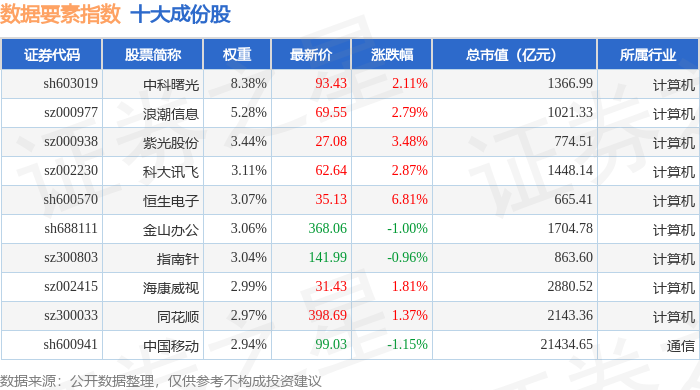 数据要素(399418)指数十大成份股详情如下: