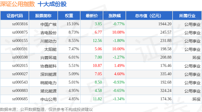 证券之星消息,1月14日,深证公用(399622)指数报收于1787.78点,涨1.48%,成交97.09亿元,换手率1.61%。当日该指数成份股中,上涨的有9家,吉电股份以10.08%的涨幅领涨,下跌的有11家,川能动力以1.8%的跌幅领跌。