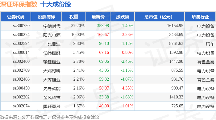 深证环保(399638)指数十大成份股详情如下: