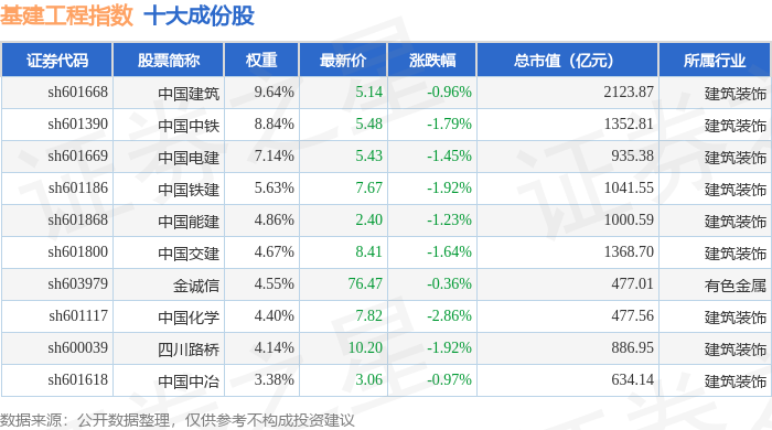 基建工程(399995)指数十大成份股详情如下: