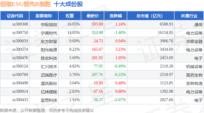 创指ESG领先R(470031)指数十大成份股详情如下: