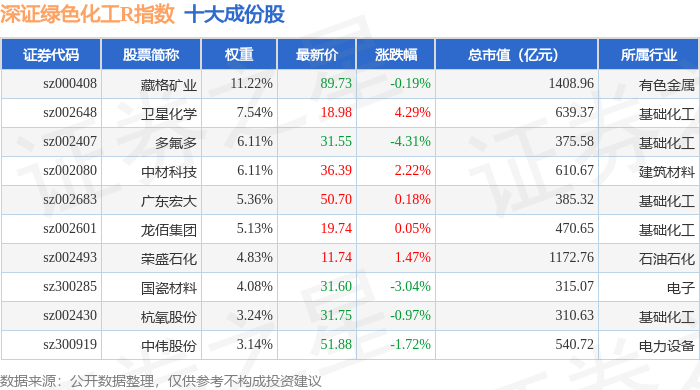 深证绿色化工R(470076)指数十大成份股详情如下: