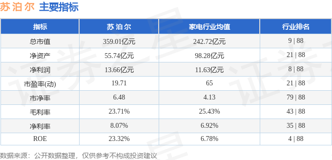 该股主要指标及行业内排名如下: