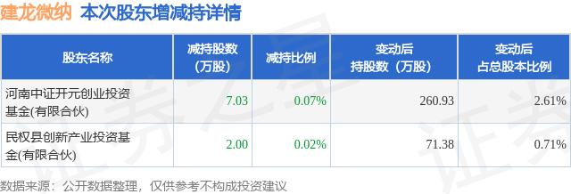 证券之星消息,1月14日建龙微纳发布公告《建龙微纳:合计持股5%以上股东减持股份结果公告》,其股东河南中证开元创业投资基金(有限合伙)、民权县创新产业投资基金(有限合伙)于2026年1月6日至2026年1月14日间合计减持9.04万股,占公司目前总股本的0.0903%,变动期间该股股价上涨1.93%,截止1月14日收盘报34.26元。