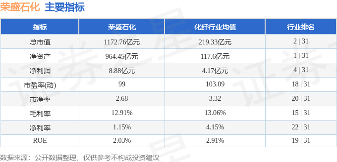 该股主要指标及行业内排名如下: