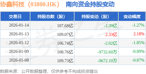 证券之星消息,1月14日南向资金减持1.39亿股协鑫科技(03800.HK)。近5个交易日中,获南向资金减持的有4天,累计净减持3.01亿股。近20个交易日中,获南向资金减持的有18天,累计净减持12.81亿股。截至目前,南向资金持有协鑫科技(03800.HK)107.68亿股,占公司已发行普通股的32.41%。