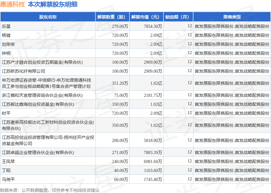 本次解禁涉及股东明细见下表: