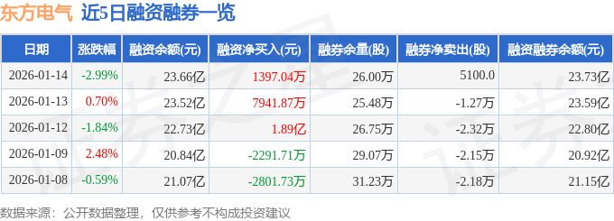东方电气融资融券信息显示,融资方面,当日融资买入4.28亿元,融资偿还4.14亿元,融资净买入1397.04万元,连续3日净买入累计2.82亿元。融券方面,融券卖出3.1万股,融券偿还2.59万股,融券余量26.0万股,融券余额650.13万元。融资融券余额23.73亿元。
