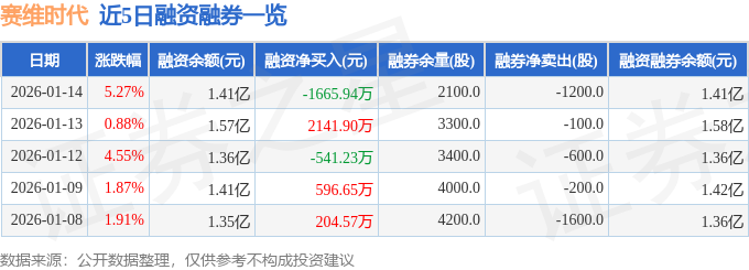 证券之星消息,截至2026年1月14日收盘,赛维时代(301381)报收于24.15元,上涨5.27%,换手率7.67%,成交量15.0万手,成交额3.61亿元。