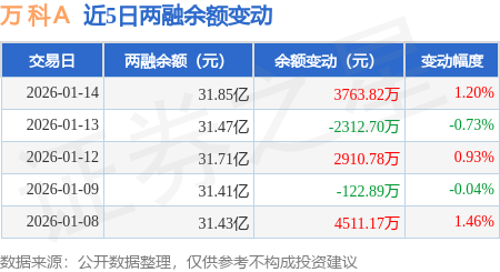 证券之星消息,1月14日,万 科A(000002)融资买入1.59亿元,融资偿还1.21亿元,融资净买入3861.88万元,融资余额31.73亿元。