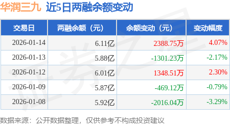 证券之星消息,1月14日,华润三九(000999)融资买入5278.42万元,融资偿还2880.42万元,融资净买入2398.0万元,融资余额6.03亿元。