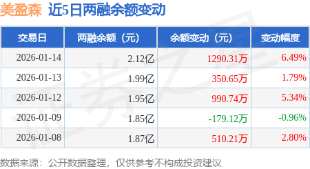 证券之星消息,1月14日,美盈森(002303)融资买入1941.9万元,融资偿还651.25万元,融资净买入1290.65万元,融资余额2.12亿元,近3个交易日已连续净买入累计2631.59万元,近20个交易日中有12个交易日出现融资净买入。