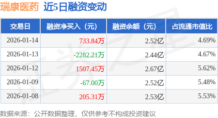 证券之星消息,1月14日,瑞康医药(002589)融资买入1.11亿元,融资偿还1.03亿元,融资净买入733.84万元,融资余额2.52亿元。