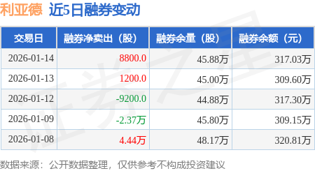 证券之星消息,1月14日,利亚德(300296)融资买入1.18亿元,融资偿还1.13亿元,融资净买入485.02万元,融资余额10.26亿元,近20个交易日中有16个交易日出现融资净买入。