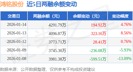 证券之星消息,1月14日,鸿铭股份(301105)融资买入867.05万元,融资偿还672.13万元,融资净买入194.92万元,融资余额4291.79万元,近3个交易日已连续净买入累计546.49万元,近20个交易日中有12个交易日出现融资净买入。