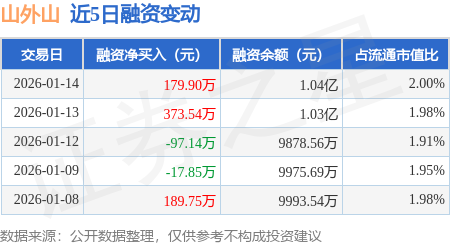 证券之星消息,1月14日,山外山(688410)融资买入1259.91万元,融资偿还1080.01万元,融资净买入179.9万元,融资余额1.04亿元。