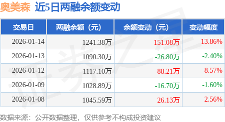 证券之星消息,1月14日,奥美森(920080)融资买入253.85万元,融资偿还102.77万元,融资净买入151.08万元,融资余额1241.38万元,近20个交易日中有11个交易日出现融资净买入。