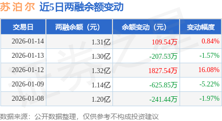 证券之星消息,1月14日,苏 泊 尔(002032)融资买入1074.35万元,融资偿还965.63万元,融资净买入108.72万元,融资余额1.29亿元,近20个交易日中有15个交易日出现融资净买入。