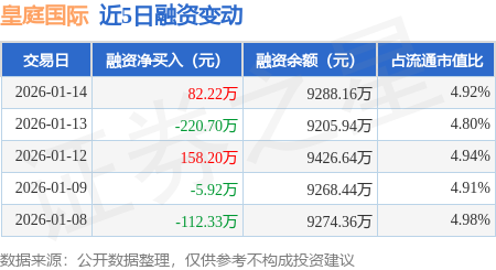 证券之星消息,1月14日,皇庭国际(000056)融资买入246.16万元,融资偿还163.94万元,融资净买入82.22万元,融资余额9288.16万元。