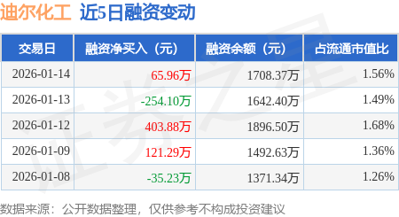 证券之星消息,1月14日,迪尔化工(920304)融资买入572.68万元,融资偿还506.72万元,融资净买入65.96万元,融资余额1708.37万元。