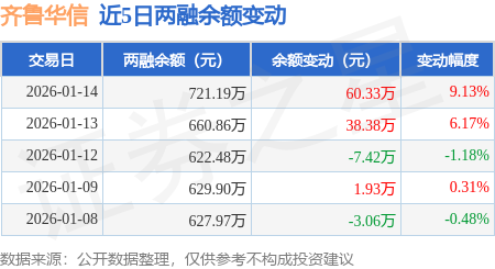 证券之星消息,1月14日,齐鲁华信(920832)融资买入165.35万元,融资偿还105.03万元,融资净买入60.33万元,融资余额721.19万元。