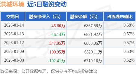 证券之星消息,1月14日,洪城环境(600461)融资买入751.31万元,融资偿还705.65万元,融资净买入45.66万元,融资余额6867.58万元。