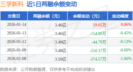 证券之星消息,1月14日,三孚新科(688359)融资买入2204.83万元,融资偿还2186.12万元,融资净买入18.7万元,融资余额3.46亿元。
