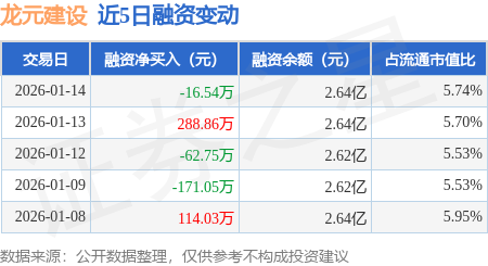 证券之星消息,1月14日,龙元建设(600491)融资买入618.44万元,融资偿还634.98万元,融资净卖出16.54万元,融资余额2.64亿元。