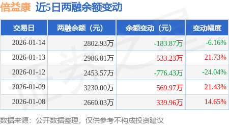 证券之星消息,1月14日,倍益康(920199)融资买入681.27万元,融资偿还865.15万元,融资净卖出183.87万元,融资余额2802.93万元,近20个交易日中有12个交易日出现融资净买入。