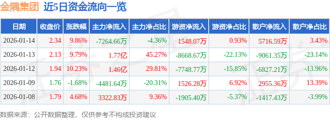 1月14日的资金流向数据方面,主力资金净流出7264.66万元,占总成交额4.36%,游资资金净流入1548.07万元,占总成交额0.93%,散户资金净流入5716.59万元,占总成交额3.43%。
