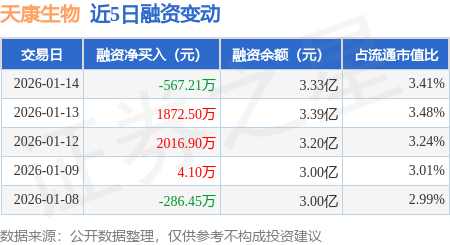 证券之星消息,1月14日,天康生物(002100)融资买入2826.96万元,融资偿还3394.17万元,融资净卖出567.21万元,融资余额3.33亿元。