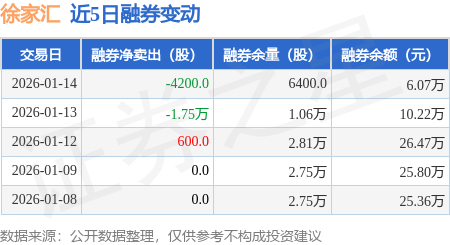 证券之星消息,1月14日,徐家汇(002561)融资买入3092.94万元,融资偿还3668.5万元,融资净卖出575.57万元,融资余额1.54亿元,近20个交易日中有11个交易日出现融资净买入。