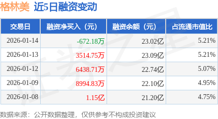 证券之星消息,1月14日,格林美(002340)融资买入3.24亿元,融资偿还3.31亿元,融资净卖出672.18万元,融资余额23.02亿元,近20个交易日中有11个交易日出现融资净买入。